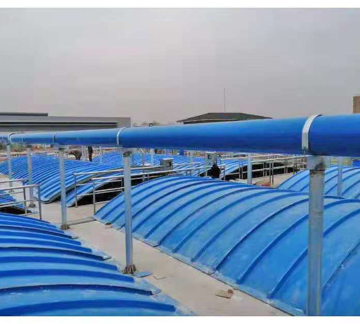 3、輕質(zhì)高強(qiáng)、安裝方便:玻璃鋼蓋板比重僅為鋼制品的1/3至1/4,固化程度高,載荷負(fù)重大,強(qiáng)度高,適用于大跨度池體,同時(shí)蓋板可分為若干小塊,便于運(yùn)輸、安裝。
