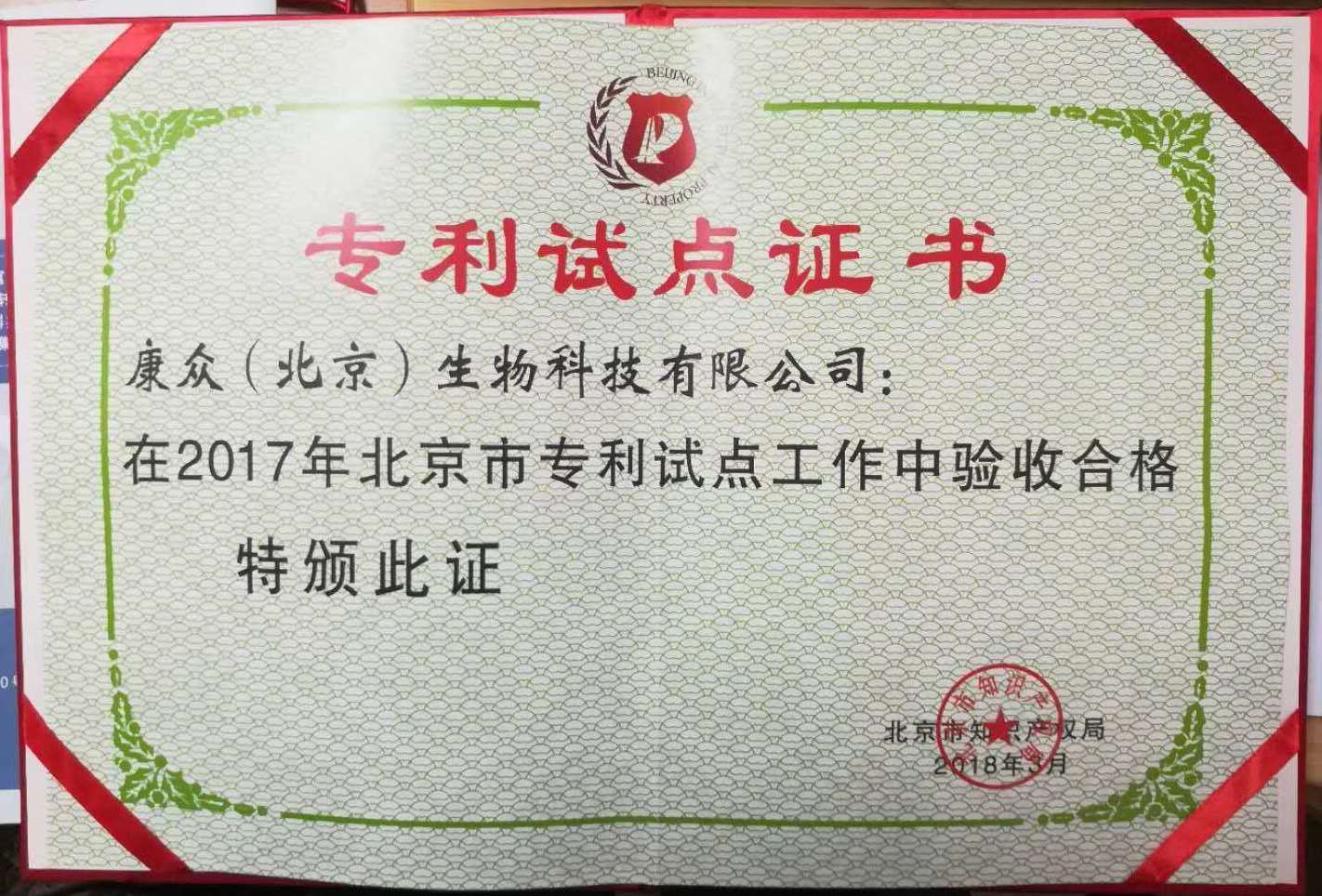 康眾生物獲得“北京市專利試點(diǎn)單位”稱號(hào)